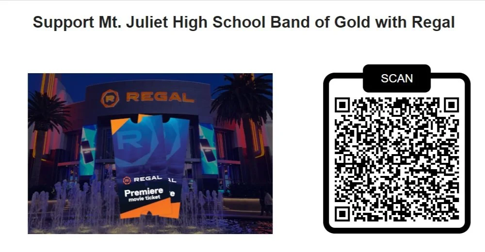 Head to the movies this weekend and support Mt. Juliet High School Band of Gold! 25% of each Regal Movie Ticket Bundle sold through our fundraising campaign goes back to our cause. You just need to purchase your bundle (includes 2x tickets) and then redeem the codes for the movie and screening of your choice. Get yours here: groupraise.com/oc/45742