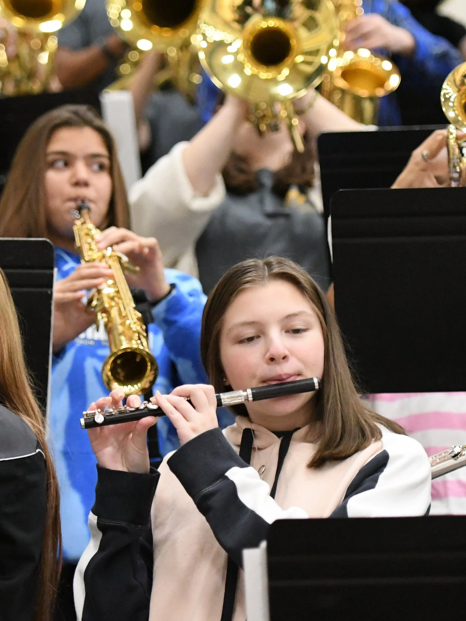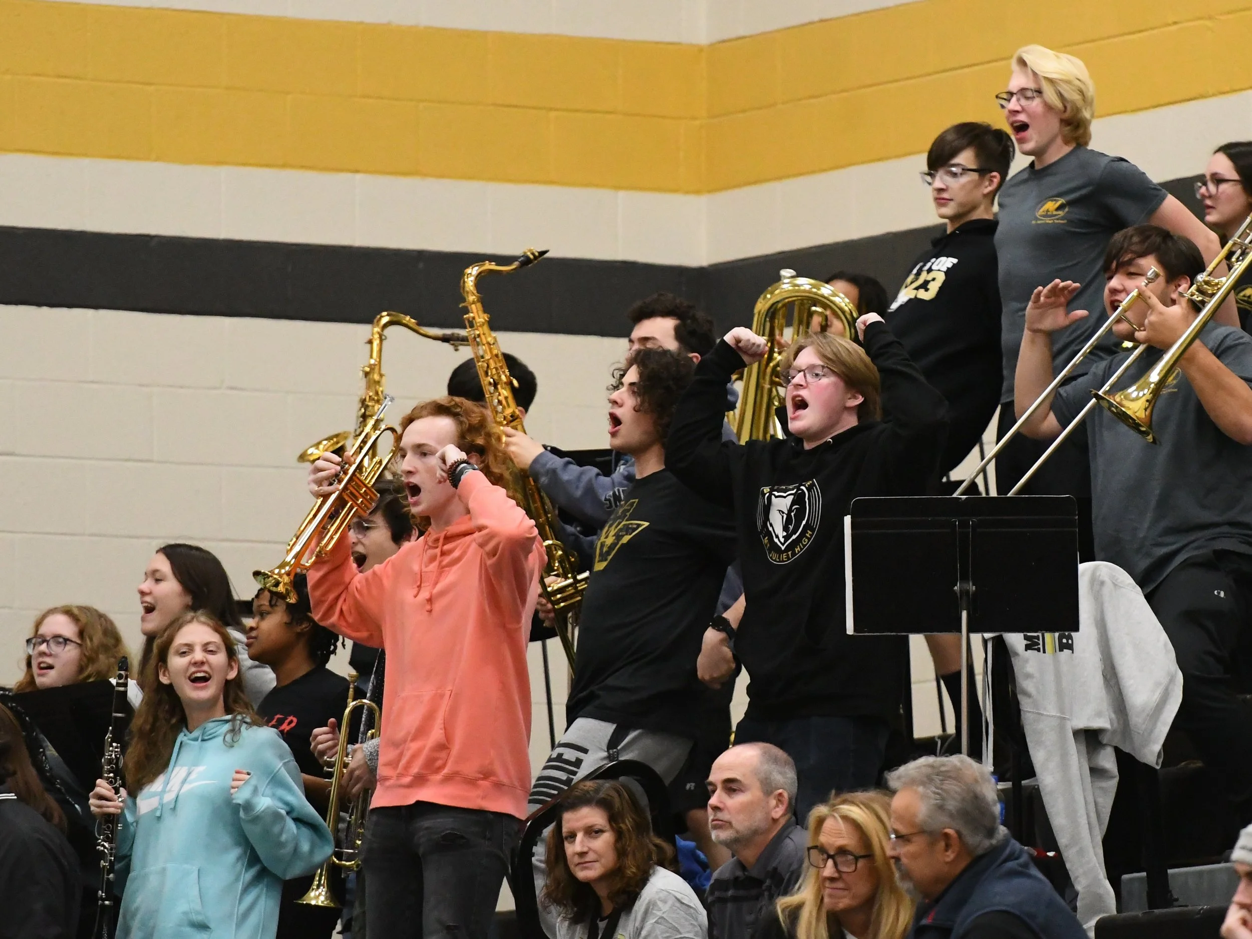 The Pep Band is a smaller group of students that enjoy cheering on the MJHS sports teams. They traditionally perform at select basketball games during the Winter season. Students in this group play cheers and fun music to help get the crowd going and to support the basketball team. They also work with the cheerleaders. Any MJHS Band student can participate.
