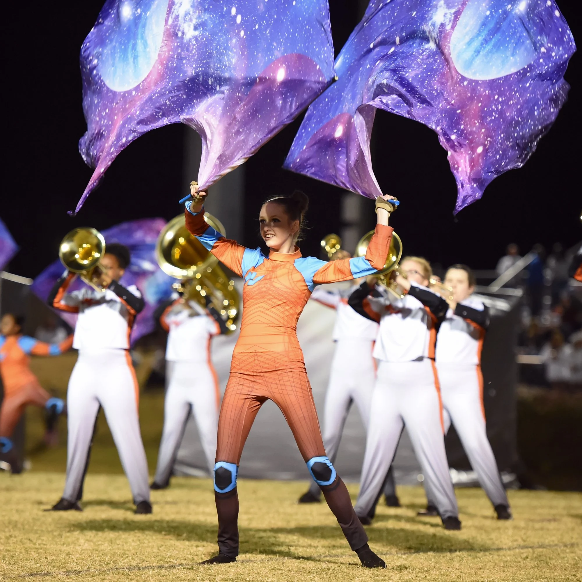 The Winter Guard program consists of MJHS student performers in a competitive, performance-based activity which involves choreographed staging, dance, and manipulation of equipment such as flags, rifles, & sabres. Winter guard performances are held indoors, usually in a gym or arena. This group begins rehearsing in November and finishes performing and competing in April. Rehearsals are after school with weekend rehearsals as well. Information and audition requirements are announced at the winter groups interest meeting in late October/early November. Students MUST participate in the MJHS Fall Marching Band to be considered for membership in this ensemble. The MJHS Winter Guard competes within our local Southeastern Color Guard Circuit (SCGC) as well as regionally and nationally through Winter Guard International (WGI). The MJHS Winter Guard has a long history of accolades but most recently were the 2021 Scholastic A Silver Medalist in SCGC and a Finalist at the 2021 WGI World Championships.